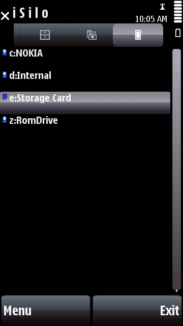 S60 3rd Edition platforms, use the Clear key ('C') to navigate back up.