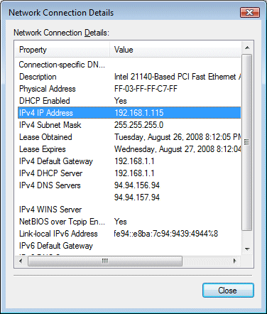 - In the Network Connection Details dialog, look for the