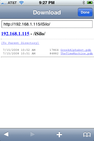 The full URL for is thus: http://192.168.1.115/iSilo.