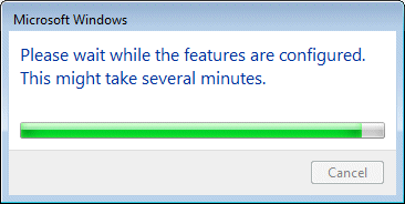 1. Windows proceeds to install and turn on Internet Information Services.